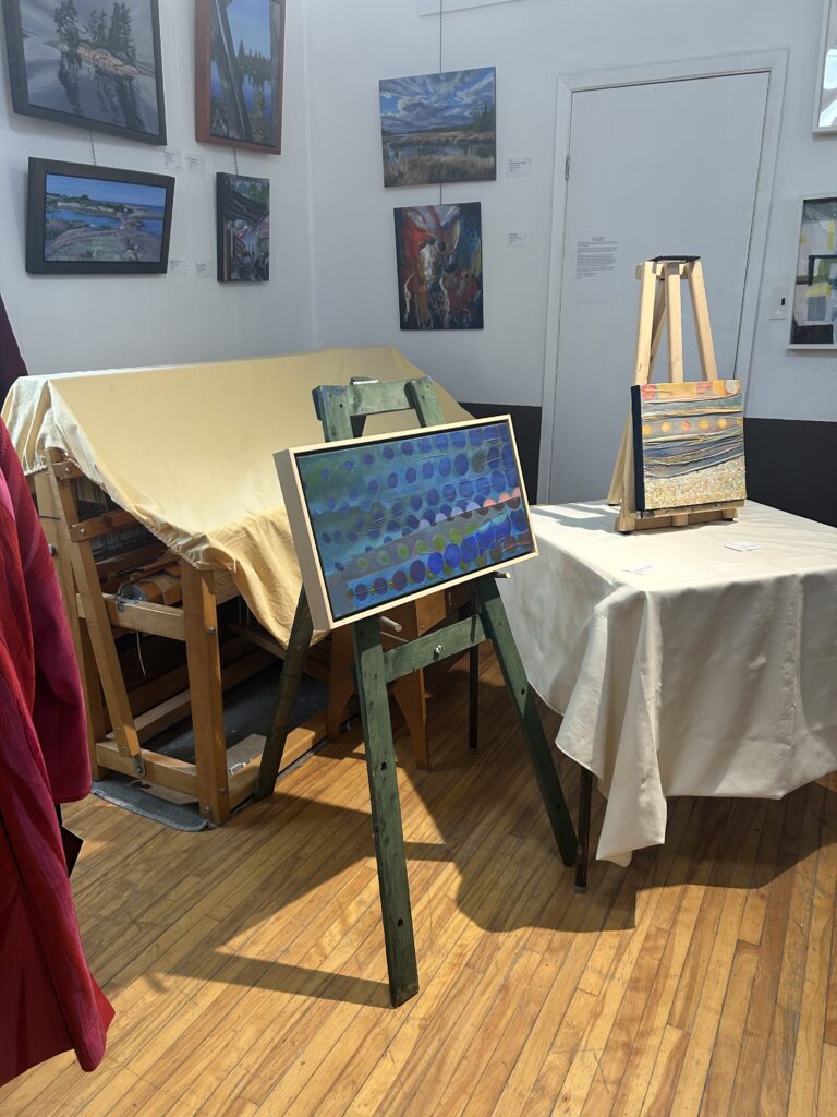 The jury connected with Fraser’s paintings over of her use of texture and multi-media. They note that her paintings “inspire a joyful play between representation of landscape and abstracted shape.”